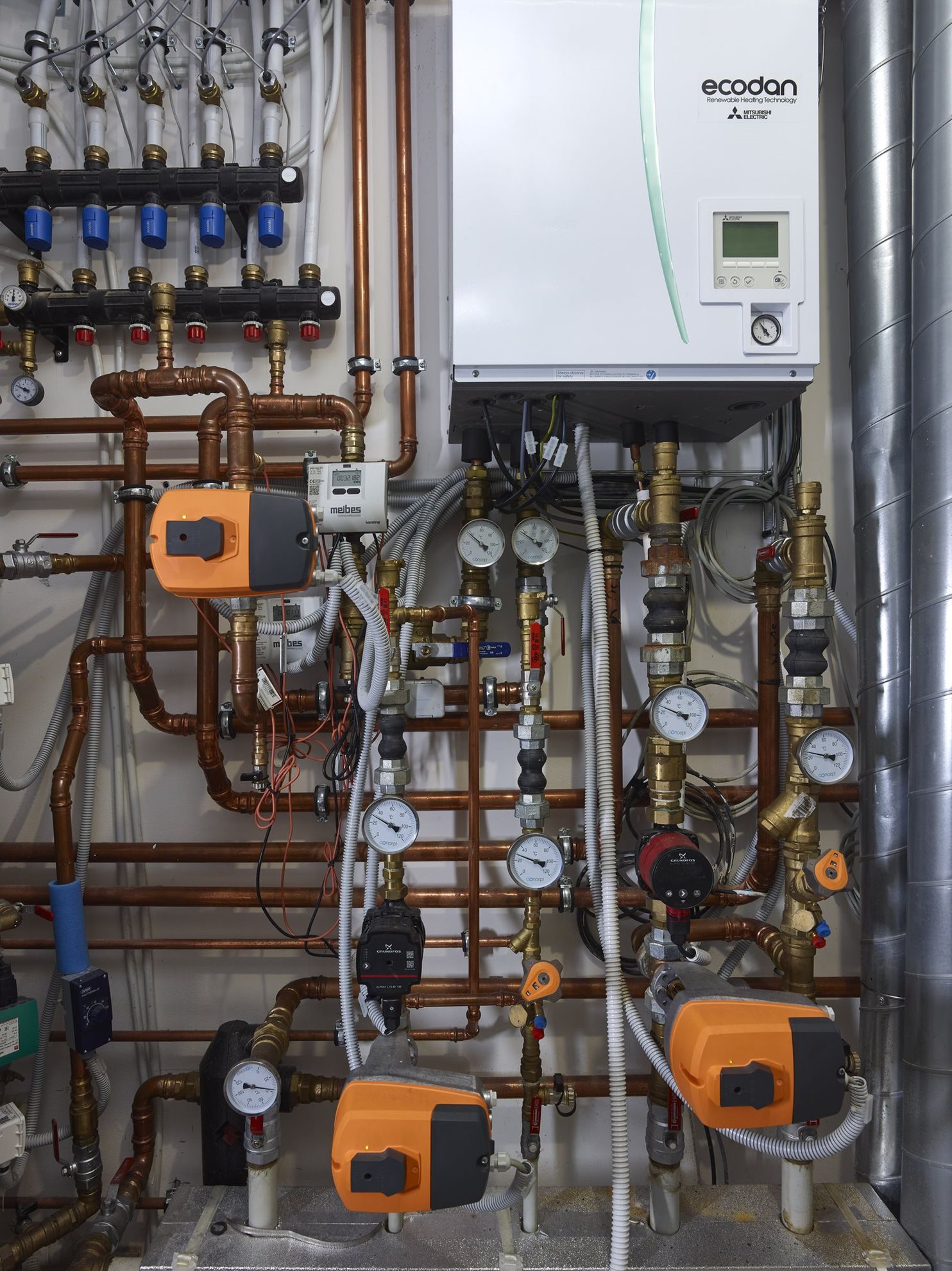 V domě je využito moderních technologií na regulaci energetických toků a vnitřního komfortu. O vnitřní tepelnou stabilitu se starají aktivované železobetonové stropy, které díky prediktivnímu řízení dopředu reagují na předpovídané změny počasí. Společně s využitím venkovního stínění žaluziemi a centrální vzduchotechnické jednotky tak dům zůstává v zimě komfortně teplý a v létě se nepřehřívá.