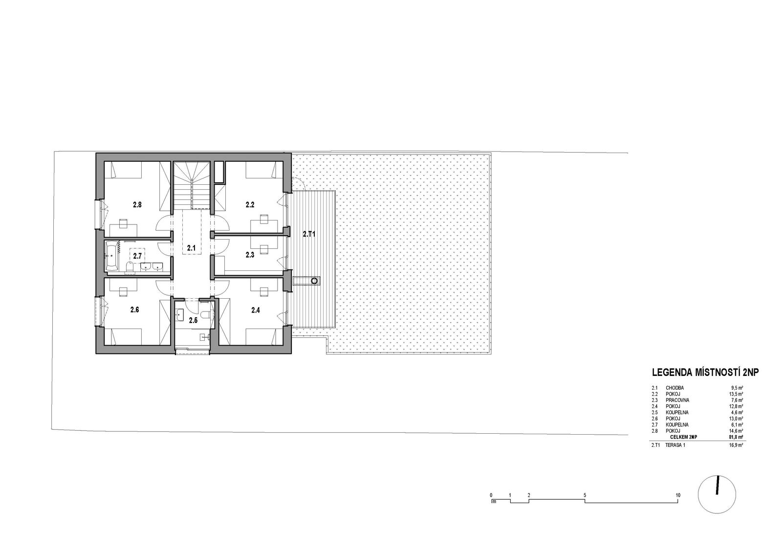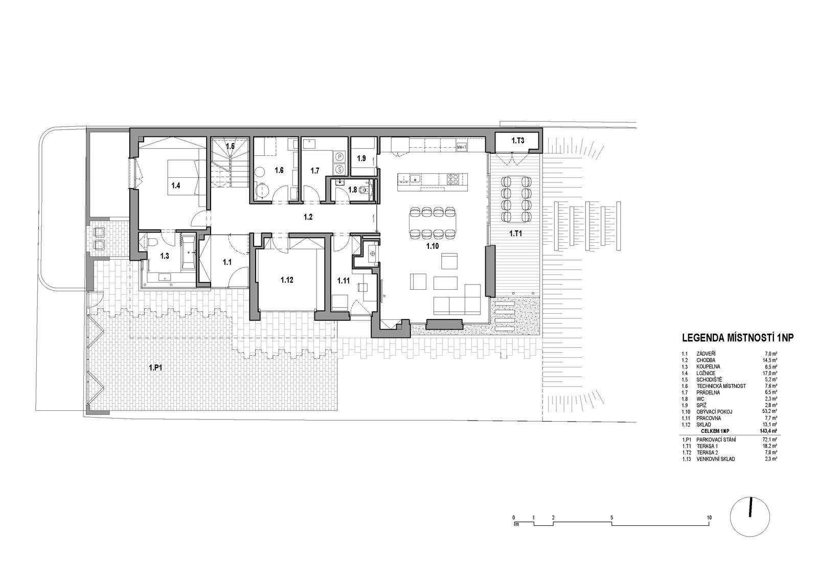 Na parcele s původním 100 let starým polorozpadlým domem jsme měli za úkol navrhnout nový dům pro rodinu se čtyřmi dětmi. Dům s poměrně rozsáhlým programem, který odpovídá požadavkům na současné bydlení, poskytuje každému členovi domácnosti vlastní prostor a využívá silných stránek pozemku - zahradu nebo výhledy na východní stranu.