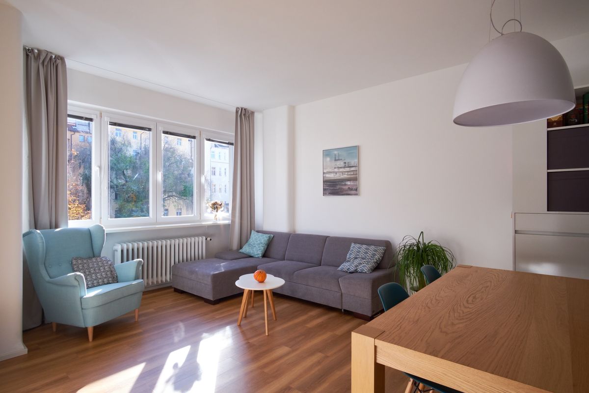 Smíchovský byt v prvorepublikovém funkcionalistickém činžáku. Kompletní rekonstrukce včetně změny dispozice z 2kk na 3kk.