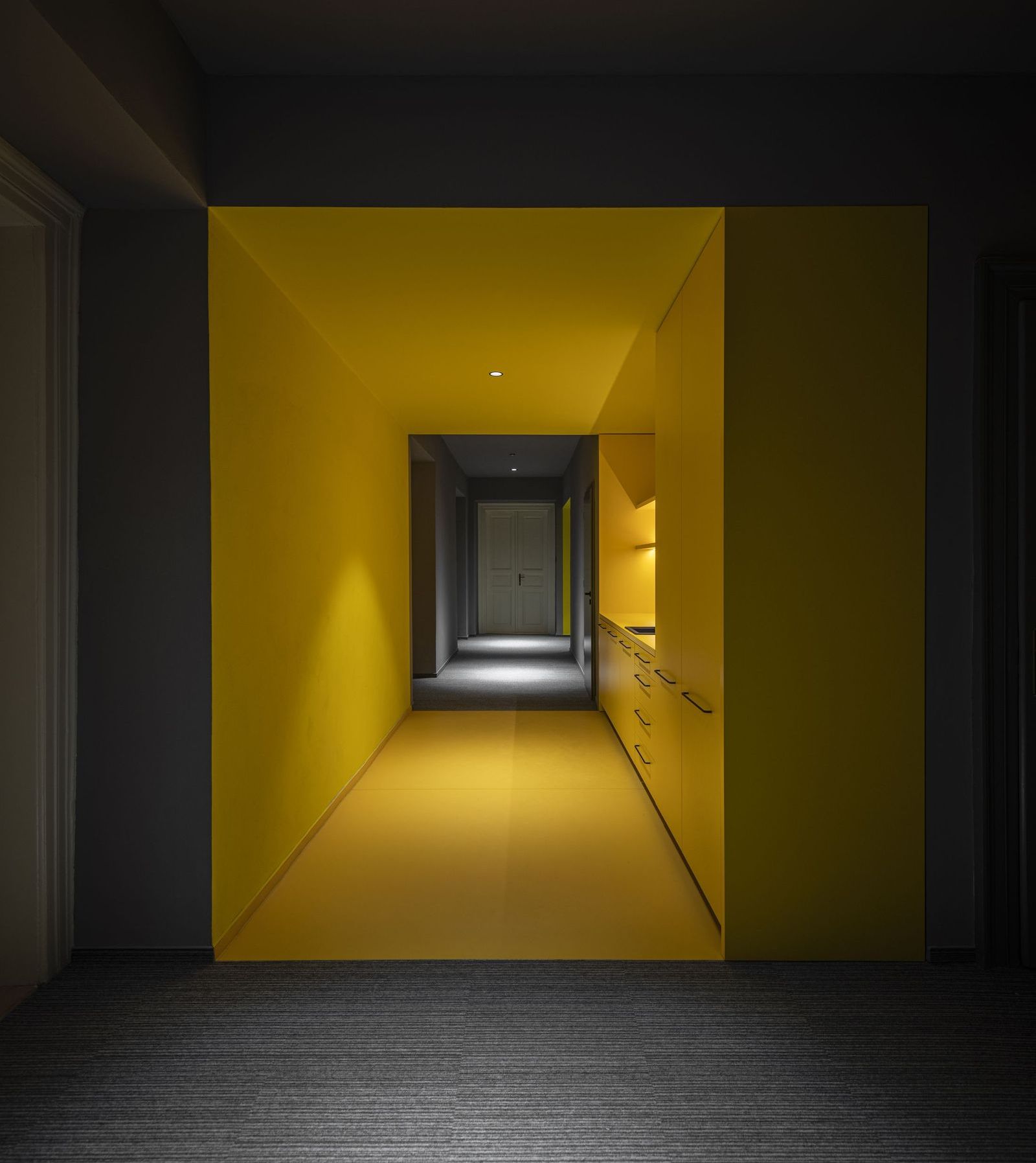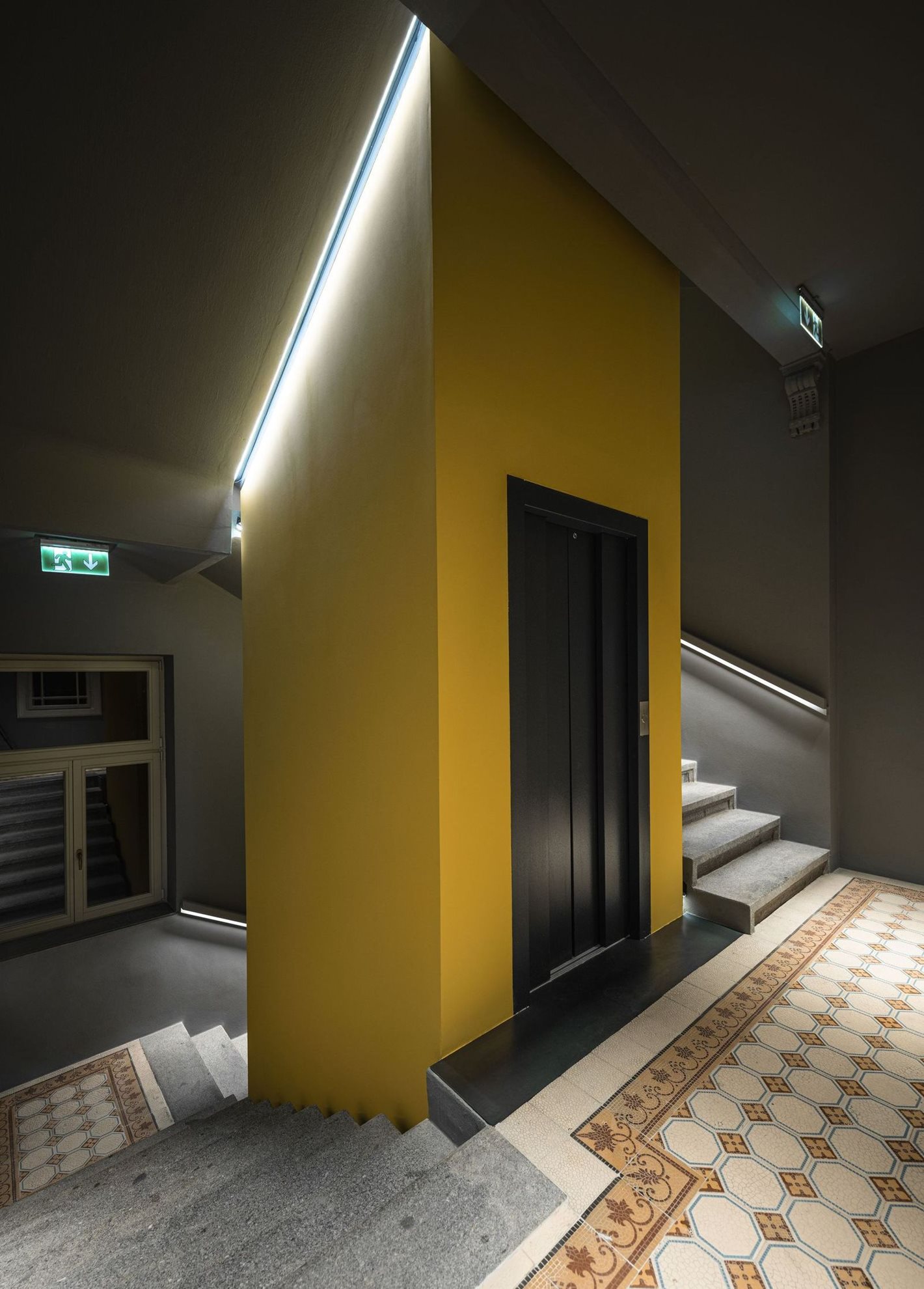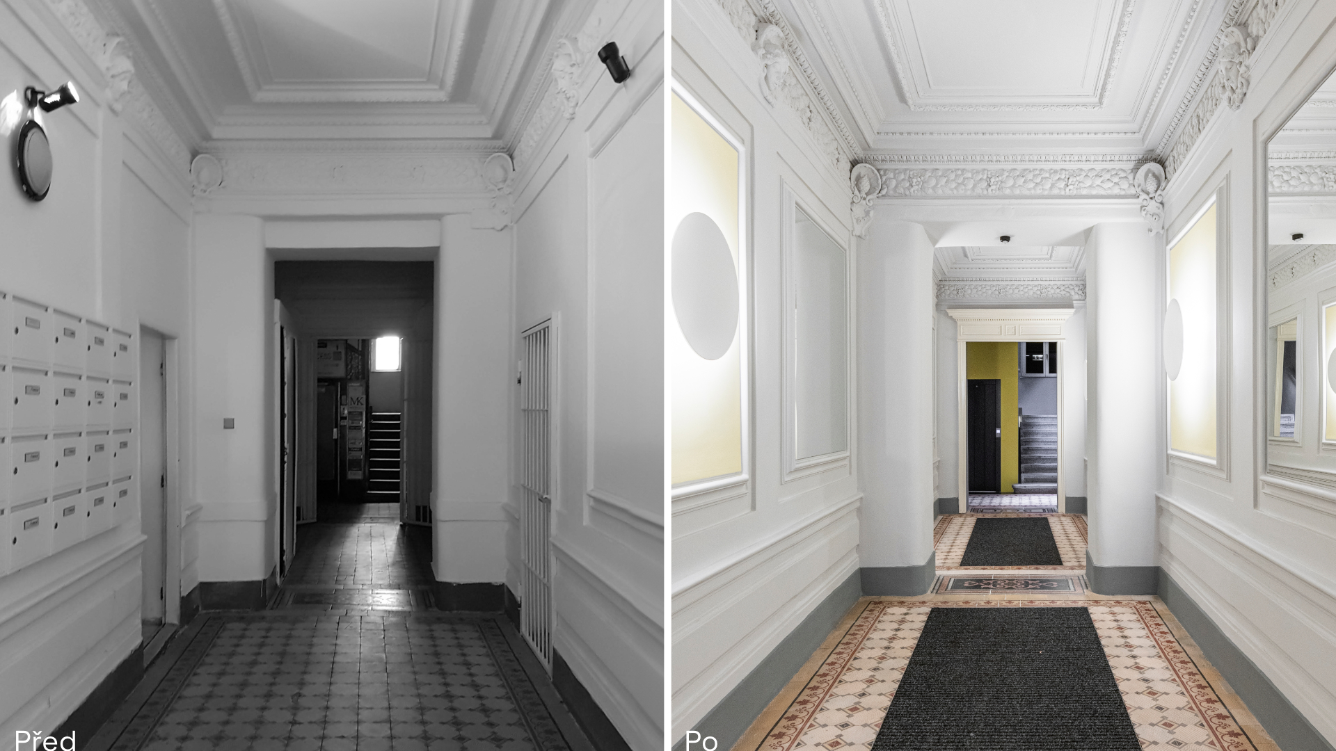 Podstatou stavebních úprav šesti podlažního nárožního domu na Vinohradech byla kultivace jeho vnitřních prostorů a zjednodušení a zpřehlednění dispozic.