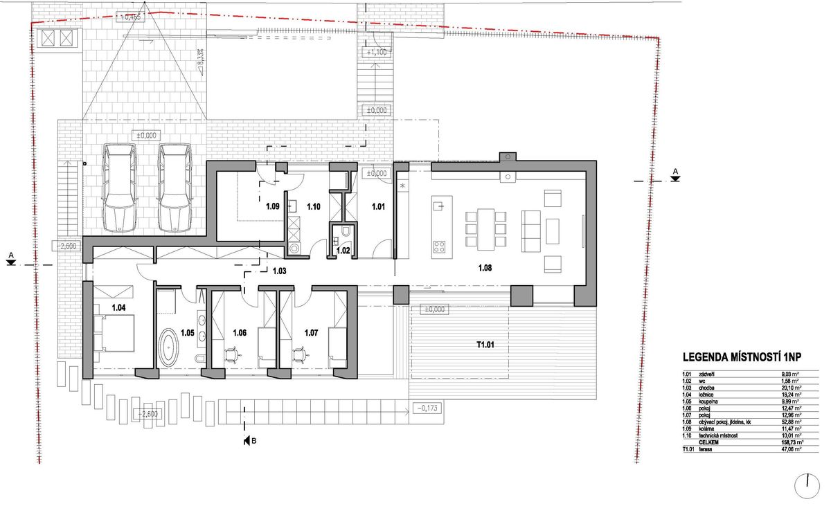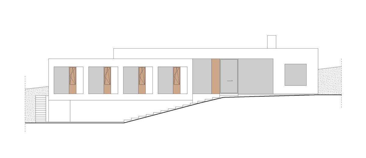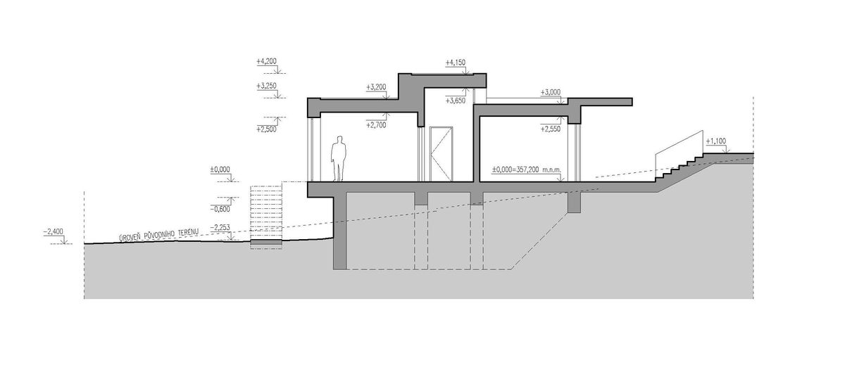 Objekt je osazen ve svahu, který je úskalím i příležitostí zároveň.