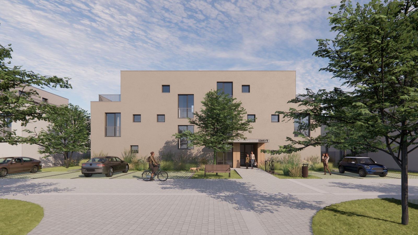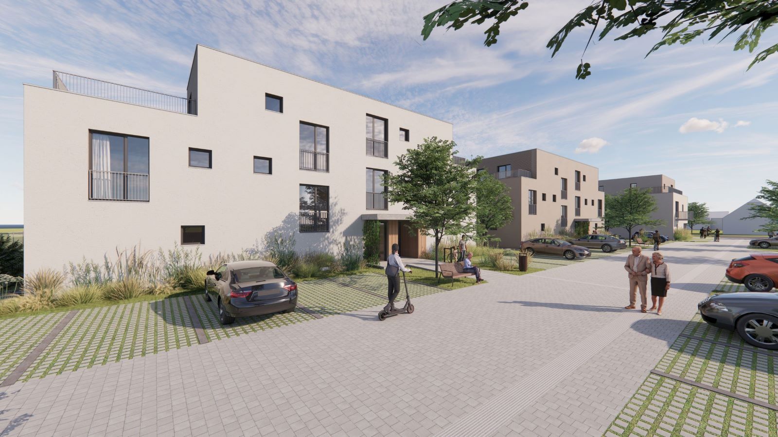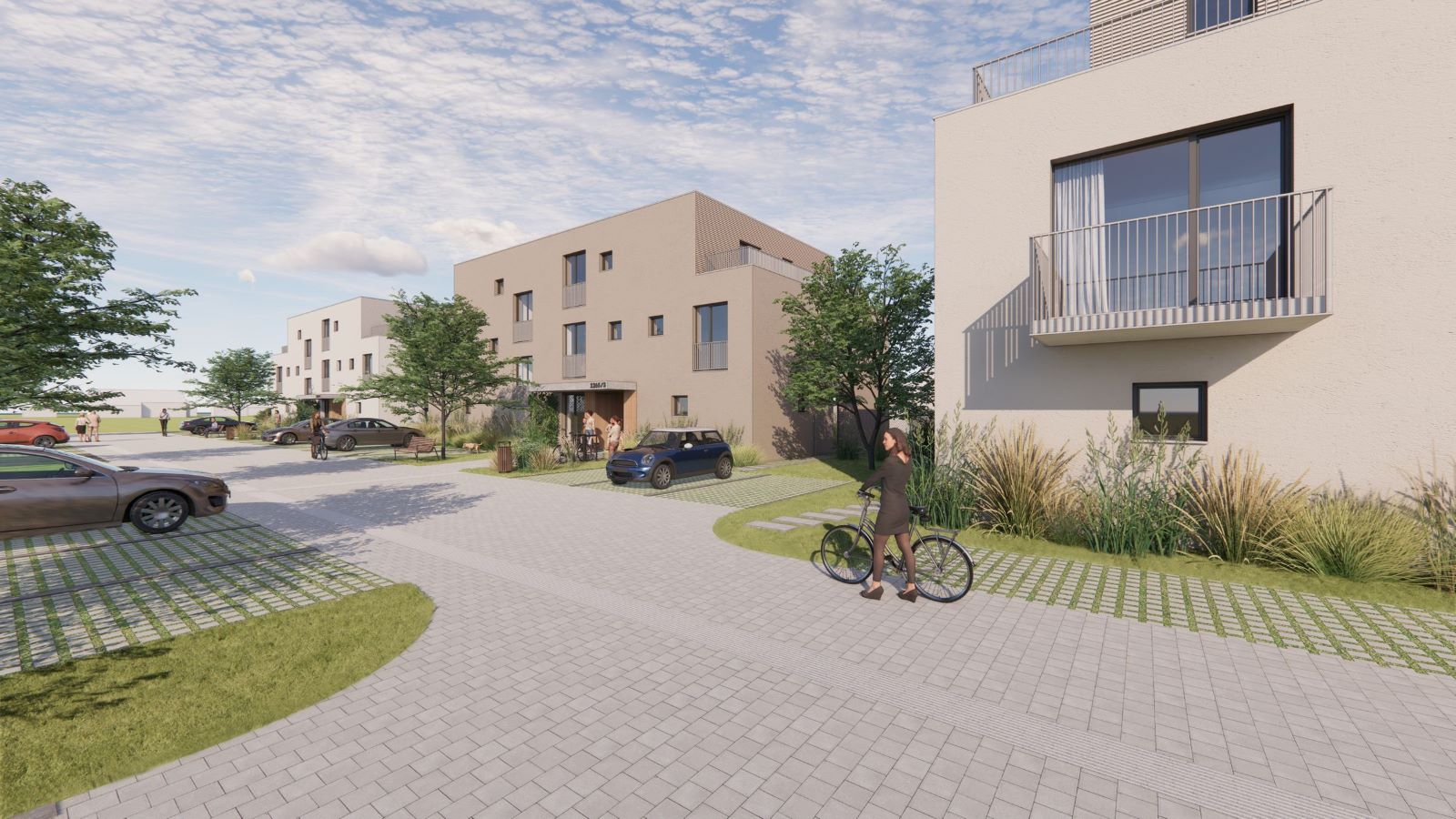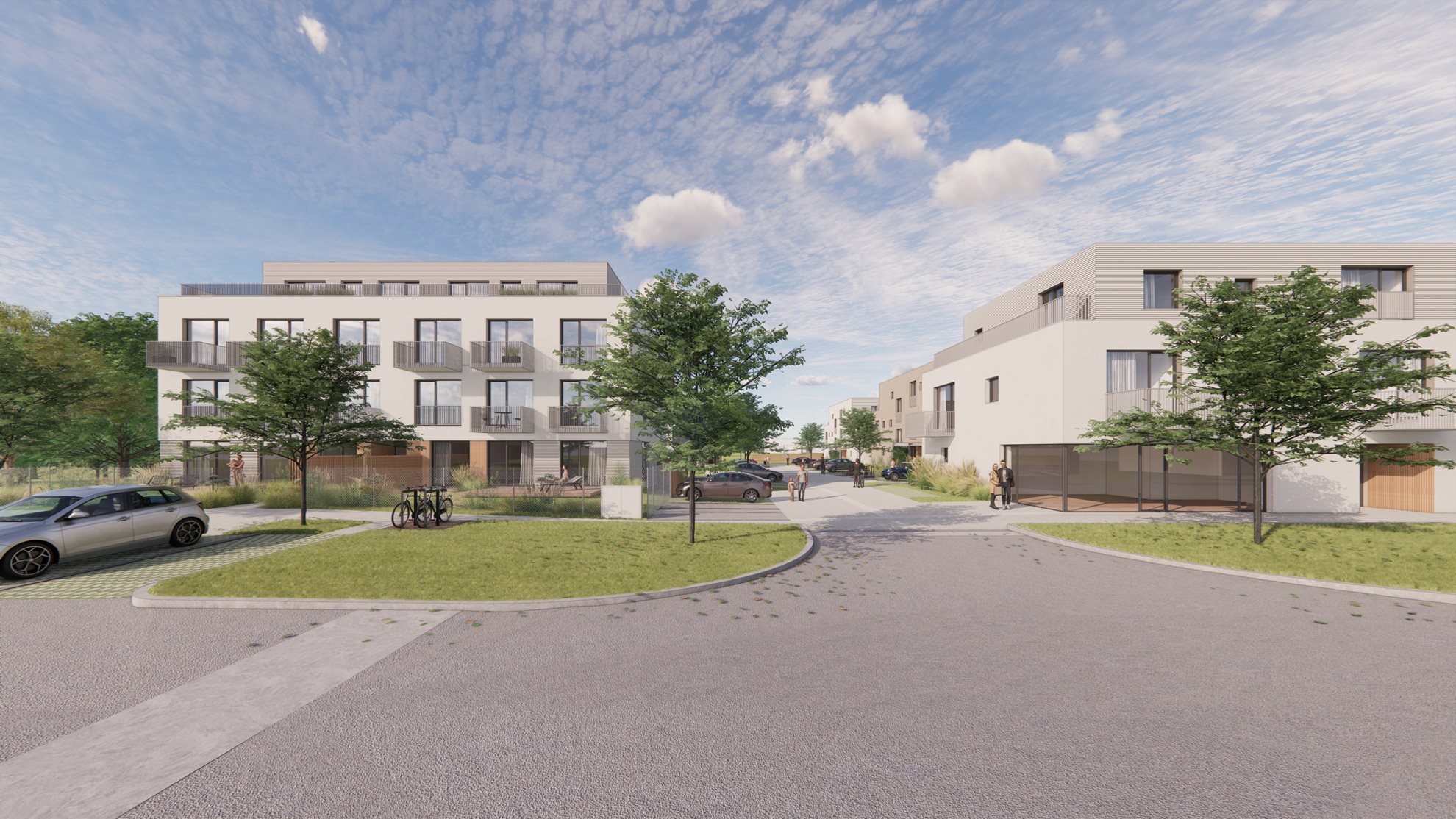 V rámci první etapy výstavby bytových domů jsme navrhli objekty A1, A2 a A3. Celá etapa obsahuje 24 bytových jednotek a 1 jednotku obchodní. V rámci druhé etapy jsou navrženy dva objekty B1 a B2 s celkovou kapacitou 24 bytových jednotek. Kapacity i hmotové řešení vycházejí z regulativů územního plánu a požadavků hlavního architekta města. Objekty se dvěma nadzemními podlažími a třetím ustupujícím chtějí co nejvíce svým měřítkem zapadnout do okolní zástavby převážně rodinných domů.