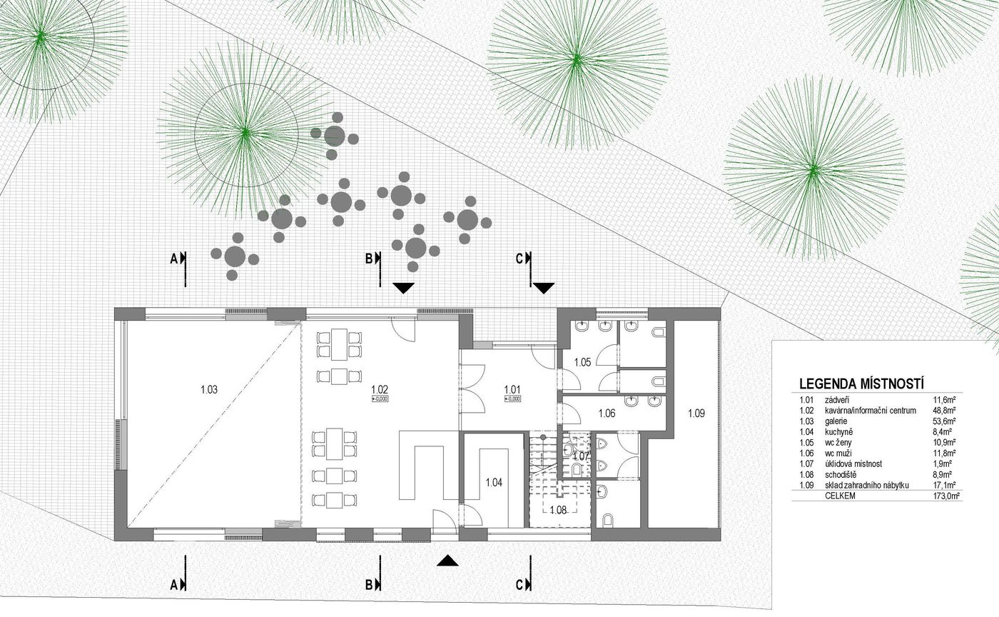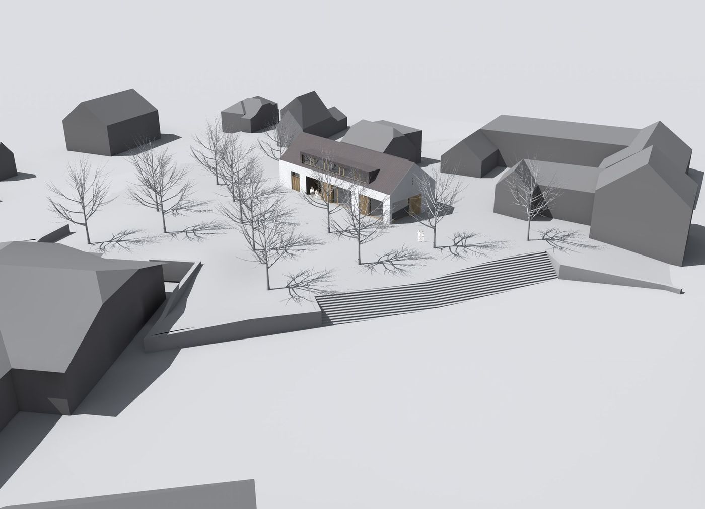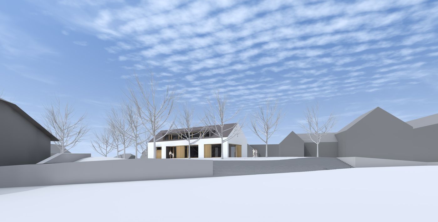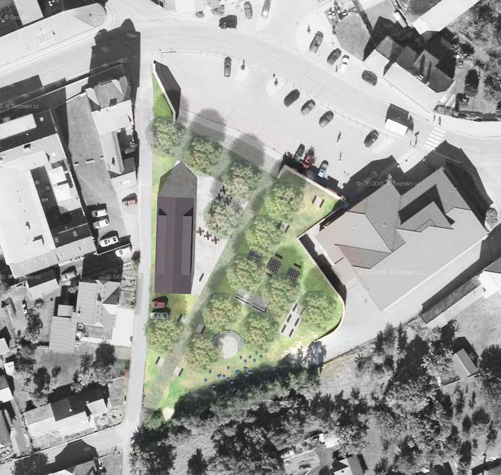 Koncept multifunkčního objektu spočívá v jeho zakomponování do navrhovaného parku tak, aby byl jeho přirozenou součástí a zároveň měřítkově zapadal do urbanistické struktury.