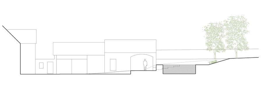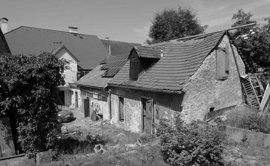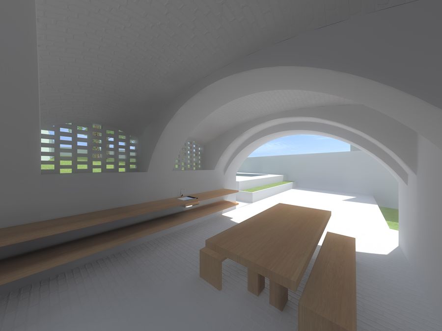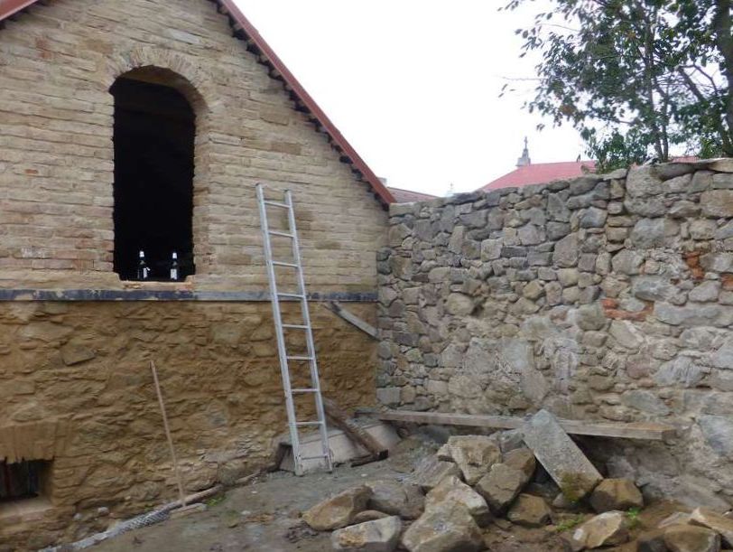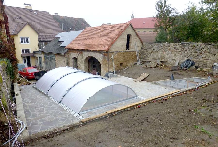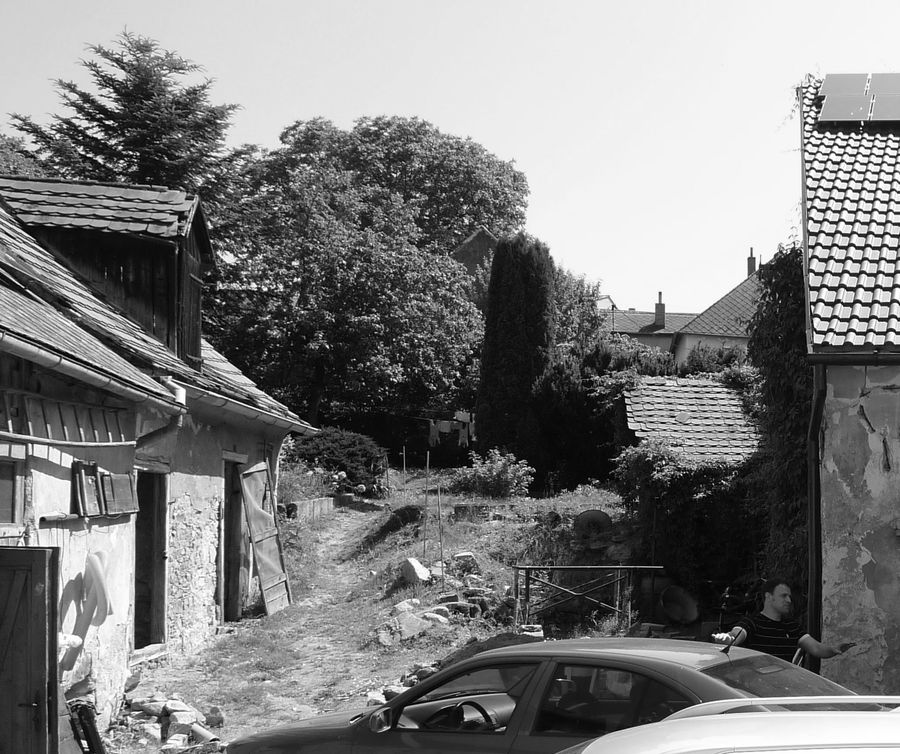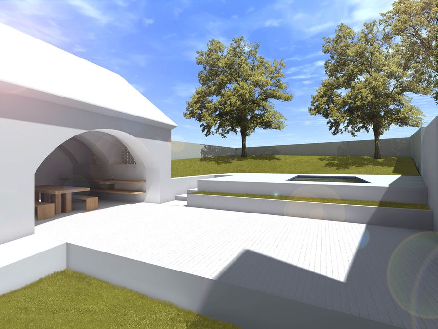 Hlavním cílem projektu bylo vybudování pobytové zahrady s letním posezením a bazénem. Bylo navrženo využití stávajícího hospodářského stavení s původní klenbou. Kryté posezení plynule přechází z objemu stavby do volného prostoru a tvoří tak jednu z úrovní zahrady, jejíž odstupňování je dáno konfigurací terénu.
